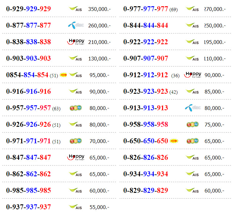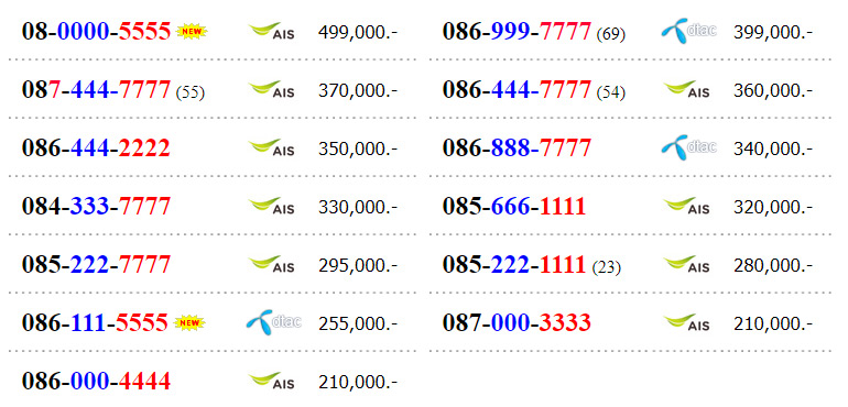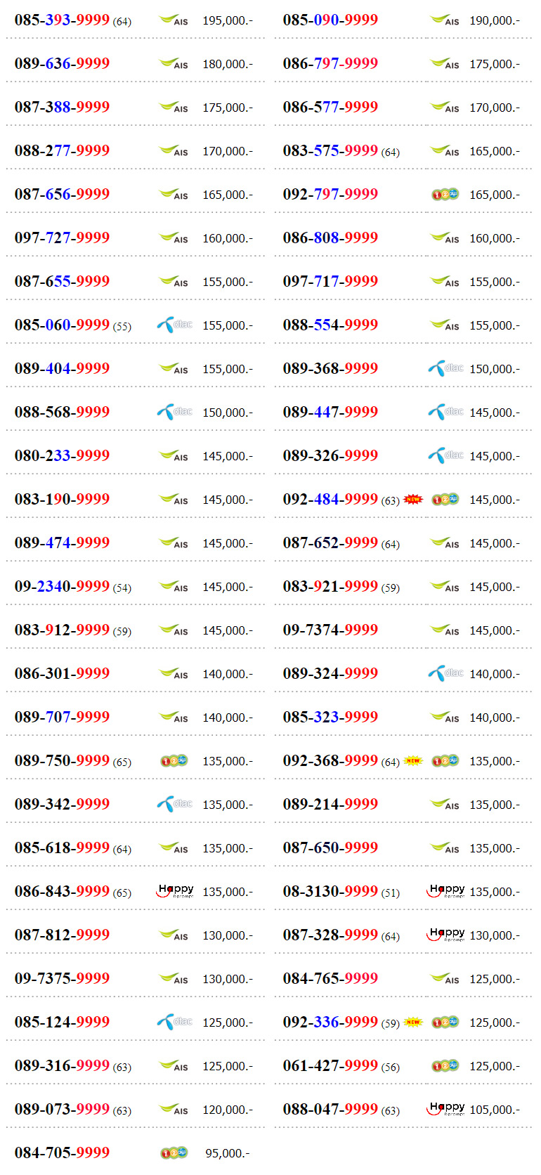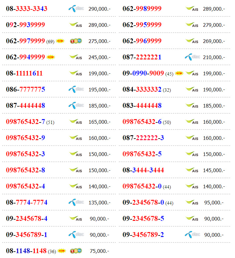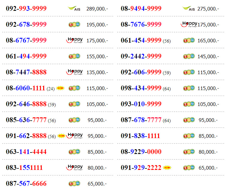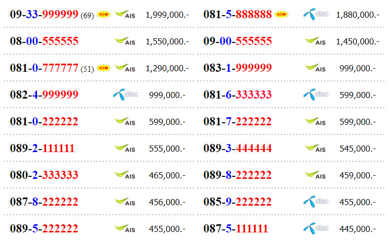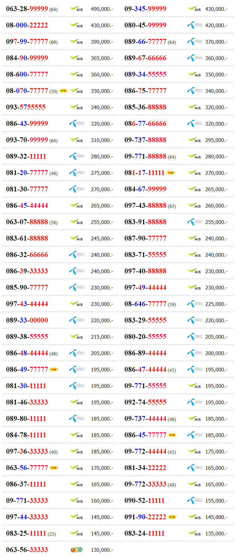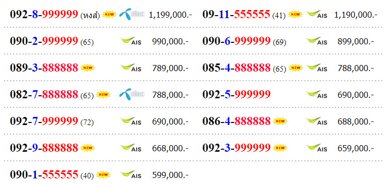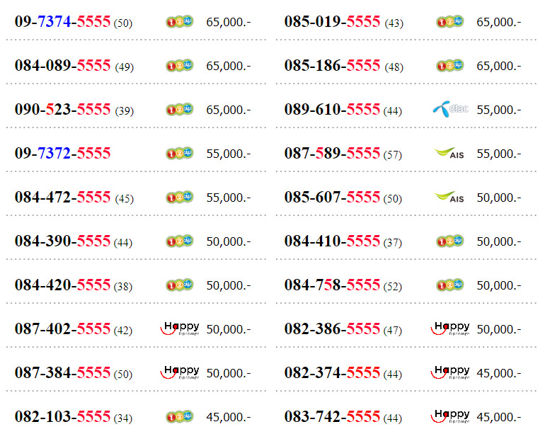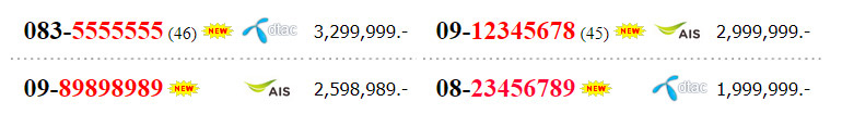 VIP เบอร์ฟันหลอ ไฟว์หน้า โฟร์หน้า โฟร์ตอง สองตอง