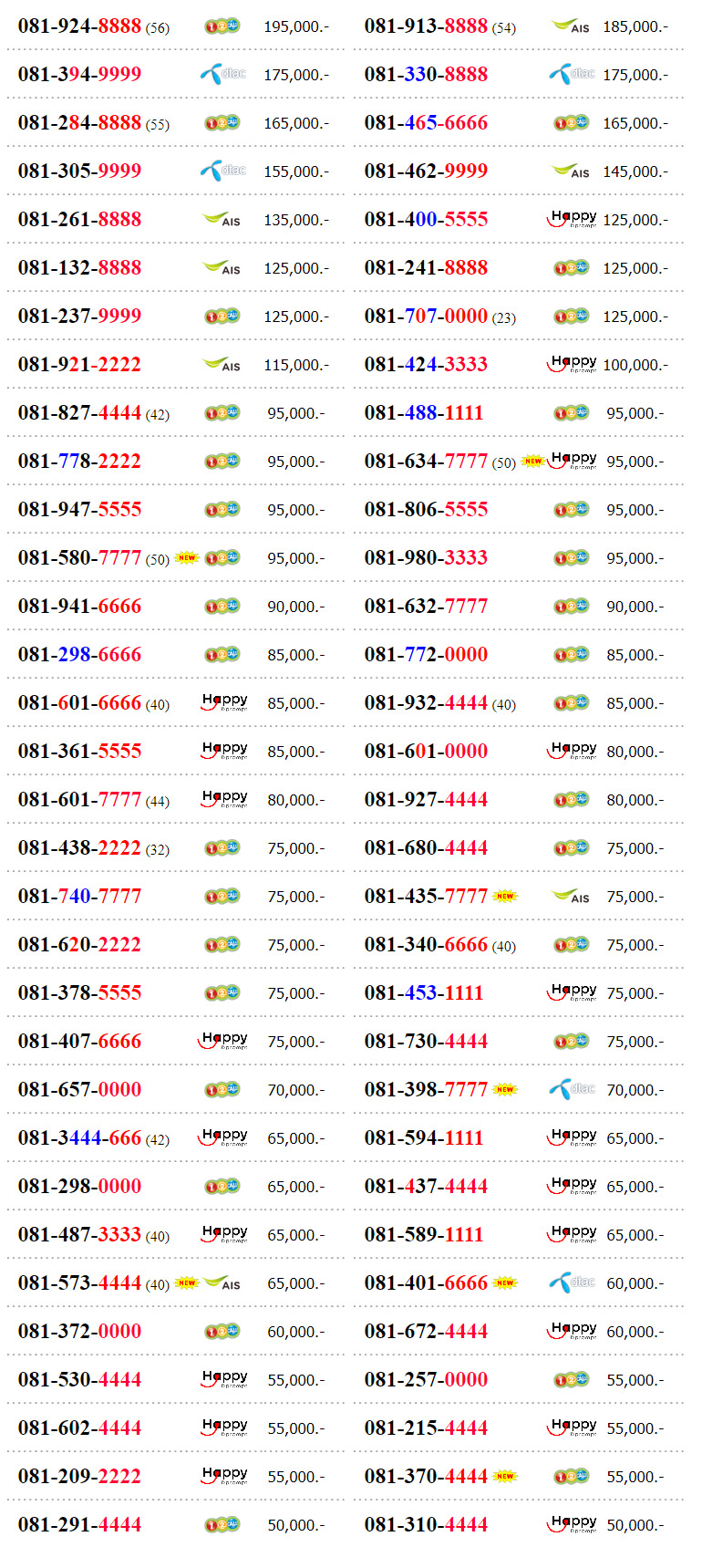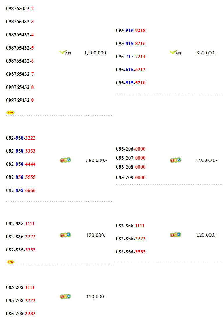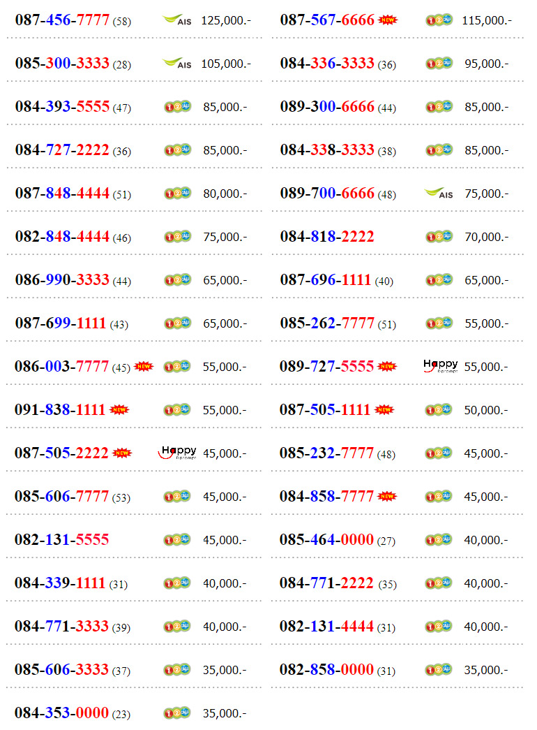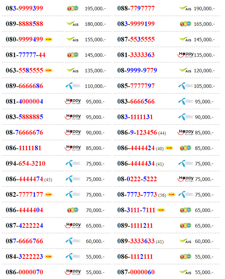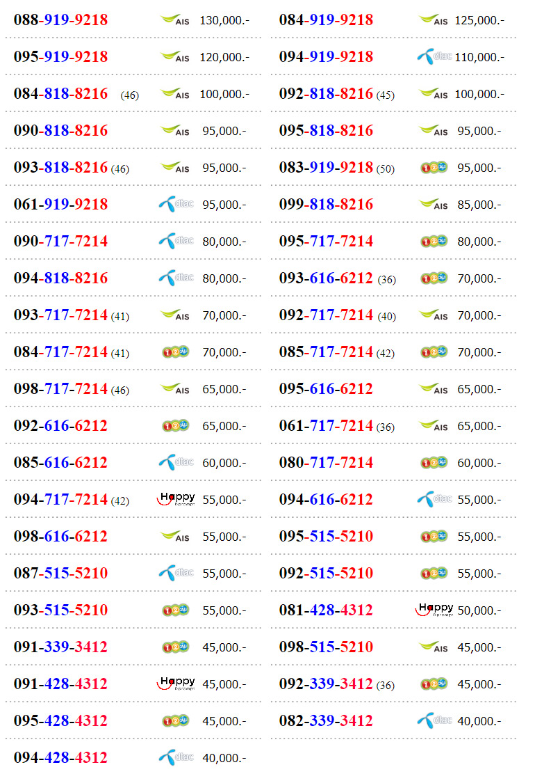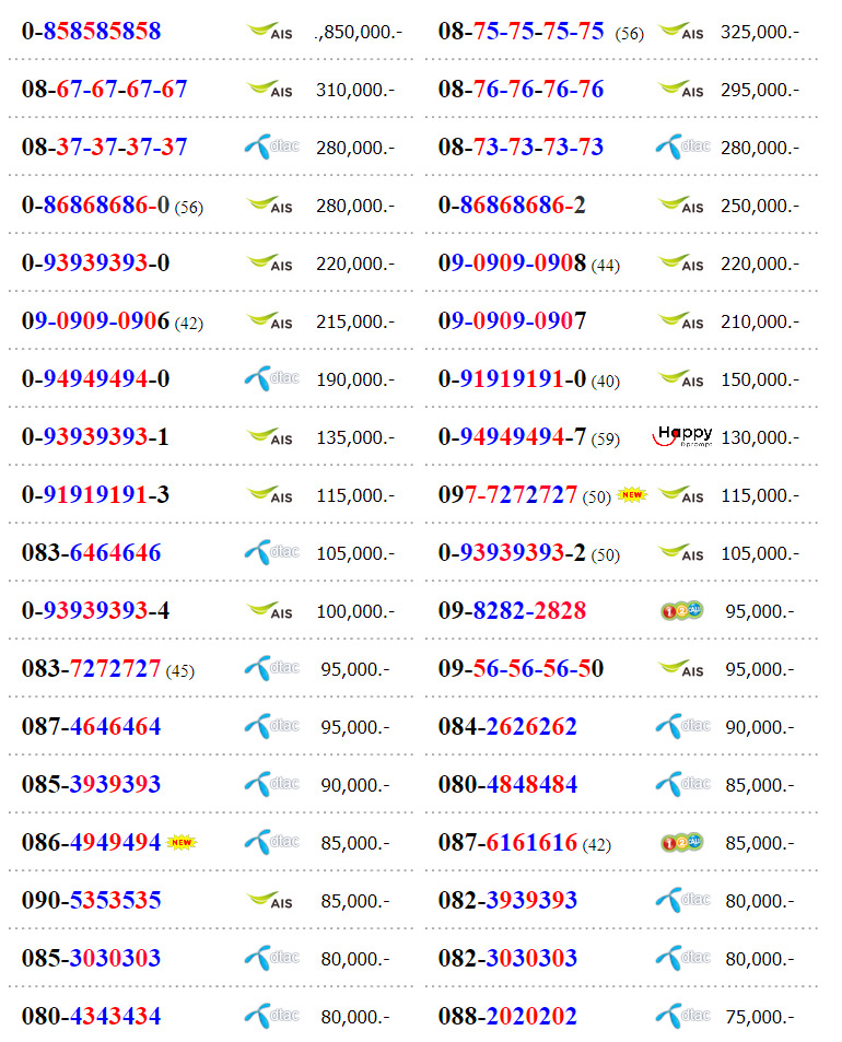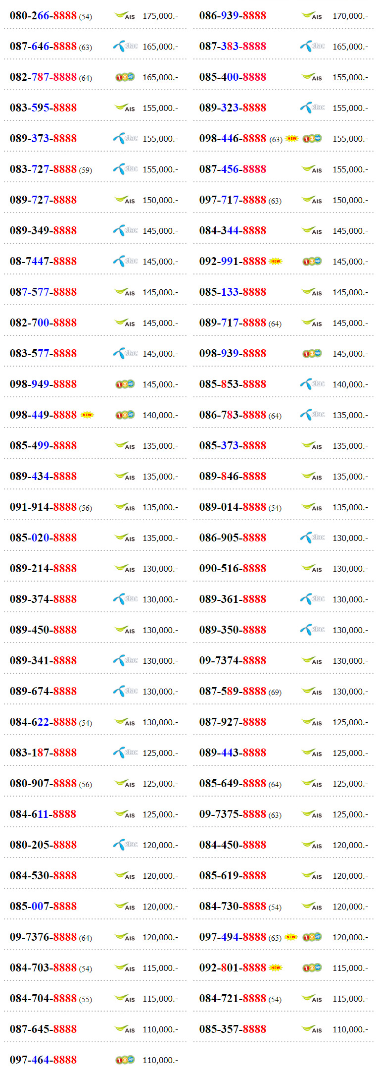 VIP เบอร์ฟันหลอ ไฟว์หน้า โฟร์หน้า โฟร์ตอง สองตอง